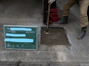最後の仕上がりが綺麗になるように想定し切り込みを入れ、電柱が抜けるように